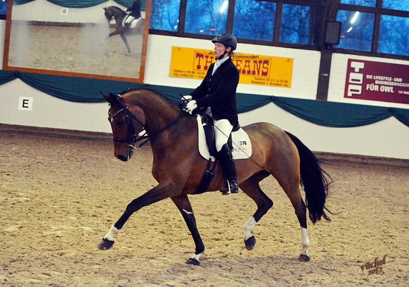 Verkauft an Maria Kaldewei, erfolgreich mit der neuen Besitzerin in M- und S-Dressuren(bis 3. Platz) und zusätzlich mit Katrin Bettenworth Grand Prix und Special(5.) placiert.