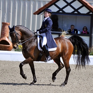 Kirsten Sieber, Deutschland, Westfalenmeisterin 2006 Junioren, zahlreiche nationale und internationale Siege und Placierungen bis St. Georg, Europameister 2008, Silber in der Mannschaft, Bronze im Einzel und Kür, 2009 erste Grand Prix Erfolge, Sieger Preis der Besten Warendorf 2009